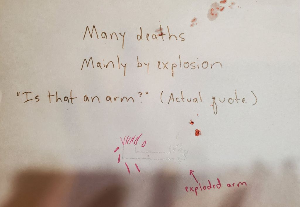 The following sequence is a dream Charlie has about being condemned to hell, complete with lava lakes, skeletal pterodactyls, and mini-demons who bite him mercilessly.