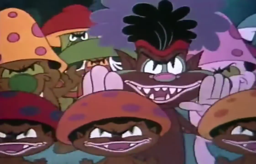 As an adult, the entire film is off-putting, but the worst offender is the sequence when Peter is trapped in a cave underground with mushroom creatures who want to turn him into one of them. When he refuses, they sing a creepy song and grow fangs. If you’ve never heard of this movie it’s probably because it hasn’t been released on DVD in the US in 25 years because the head of security and his three backup singers look just like historic racist caricatures of Black people:
