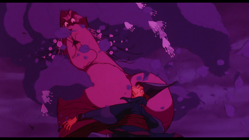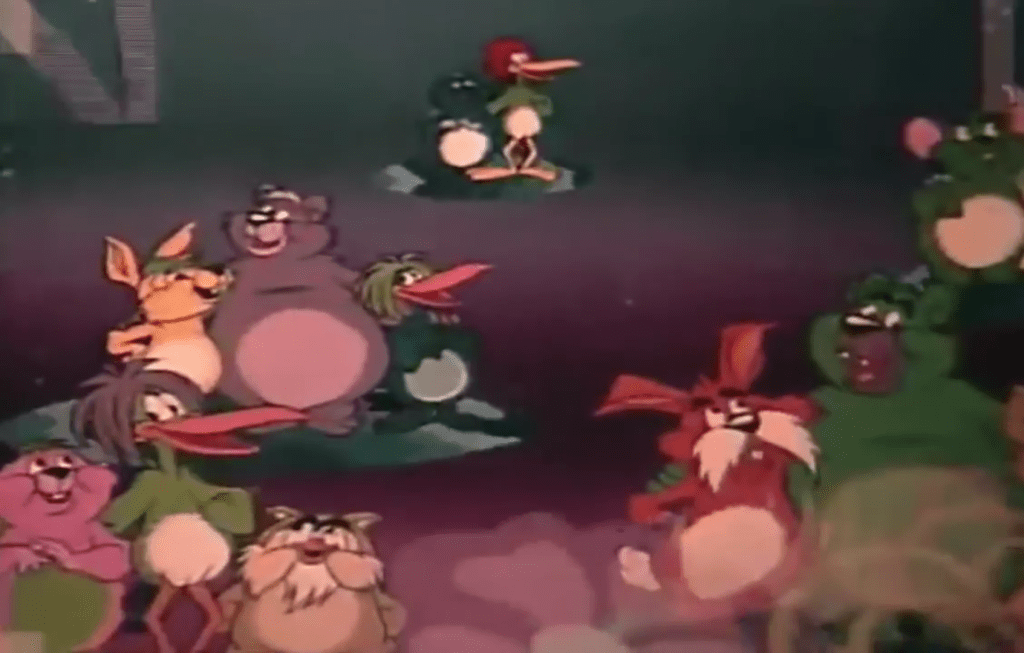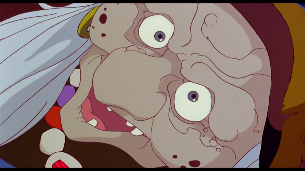 The writers’ idea of humor is endless lazy puns and ethnic stereotypes such as a lizard who sounds like Super Mario and a French fox (also the only female character who has any significant dialogue) who spends her screentime being vain and coy. So to sum up the plot, Peter is a painter who is magic-ed by a tree to make him understand the forest animals. They’re being menaced by the bitter Emperor Spine, who’s set on decimating the woodlands. The animals are obnoxious, from cutesy hedgehogs who say things like “Yummy tummy!” to a sports-obsessed bear and a beaver who makes horrible clicking noises. There are multiple scenes that dissolve into blood-curdling psychadelic sequences for no particular reason: