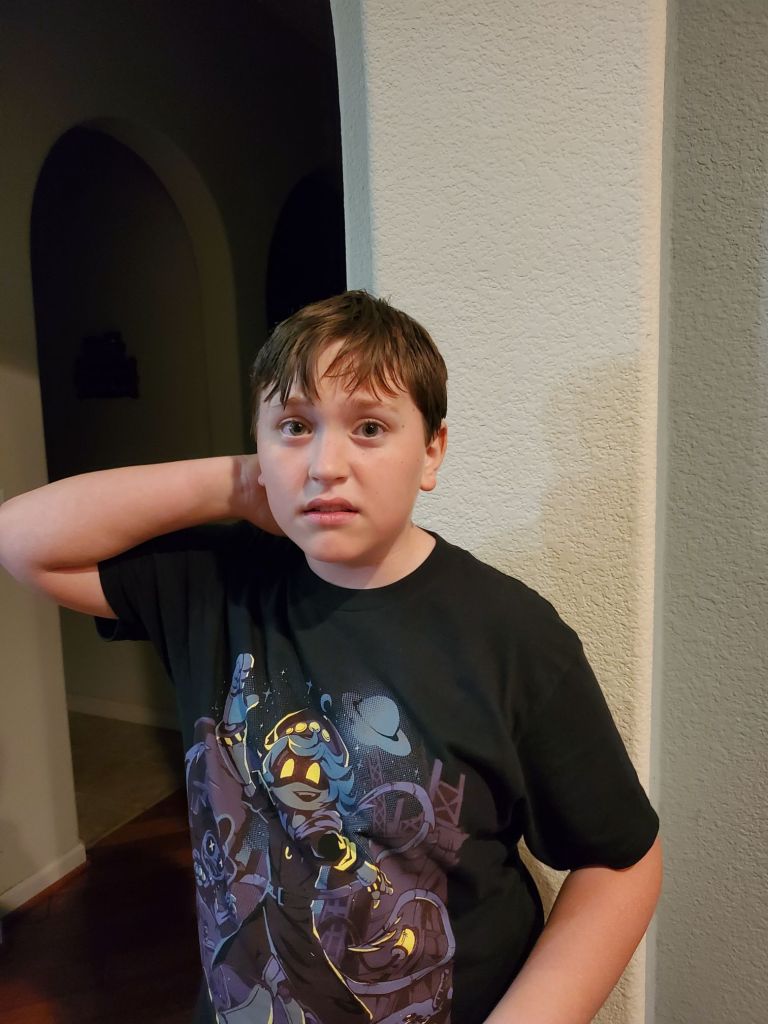 He’s been watching nerdcore since he was a wee baby, when his siblings put it on. It’s when gamers make music videos for songs they wrote about video games, and they often perform in costume as the characters. His favorites are The Stupendium, Dan Bull, and Random Encounters. (Though to be honest, I love them too.) Below is his top pick of the moment. He doesn’t scare easily.