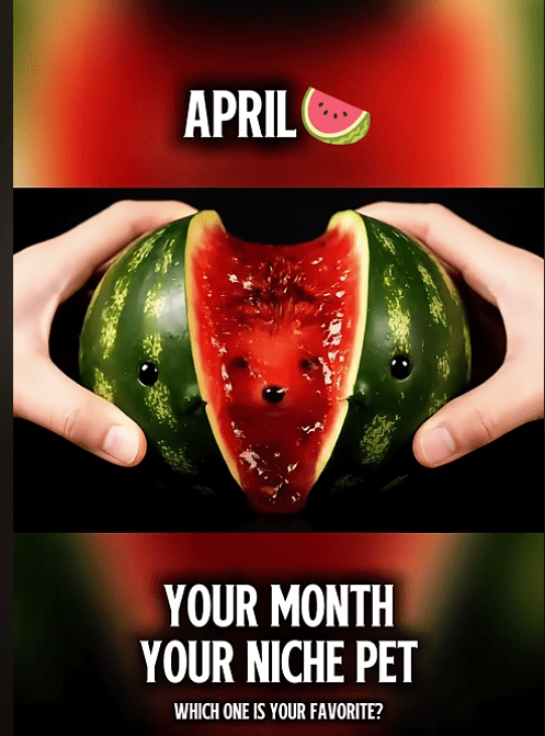People make AI videos for a variety of reasons, sometimes trying to pass them off as real, but Jack likes the ones that are purposely fantastical, like a series of ladies getting into beds made of distinctly un-bed-like materials. It’s seriously supposed to be relaxing, but often the woman starts sinking and merging with the bed. Or there are the ones that are meant to be cute, like the anthropomorphized fruit globes that are squashed open by disembodied hands to reveal animals. In the picture above, that watermelon has eyes and appears sentient–what kind of Cronenbergian body horror is that?! I can’t decide which are more nightmarish: those or the ones of babies made of fruit practicing cannibalism.