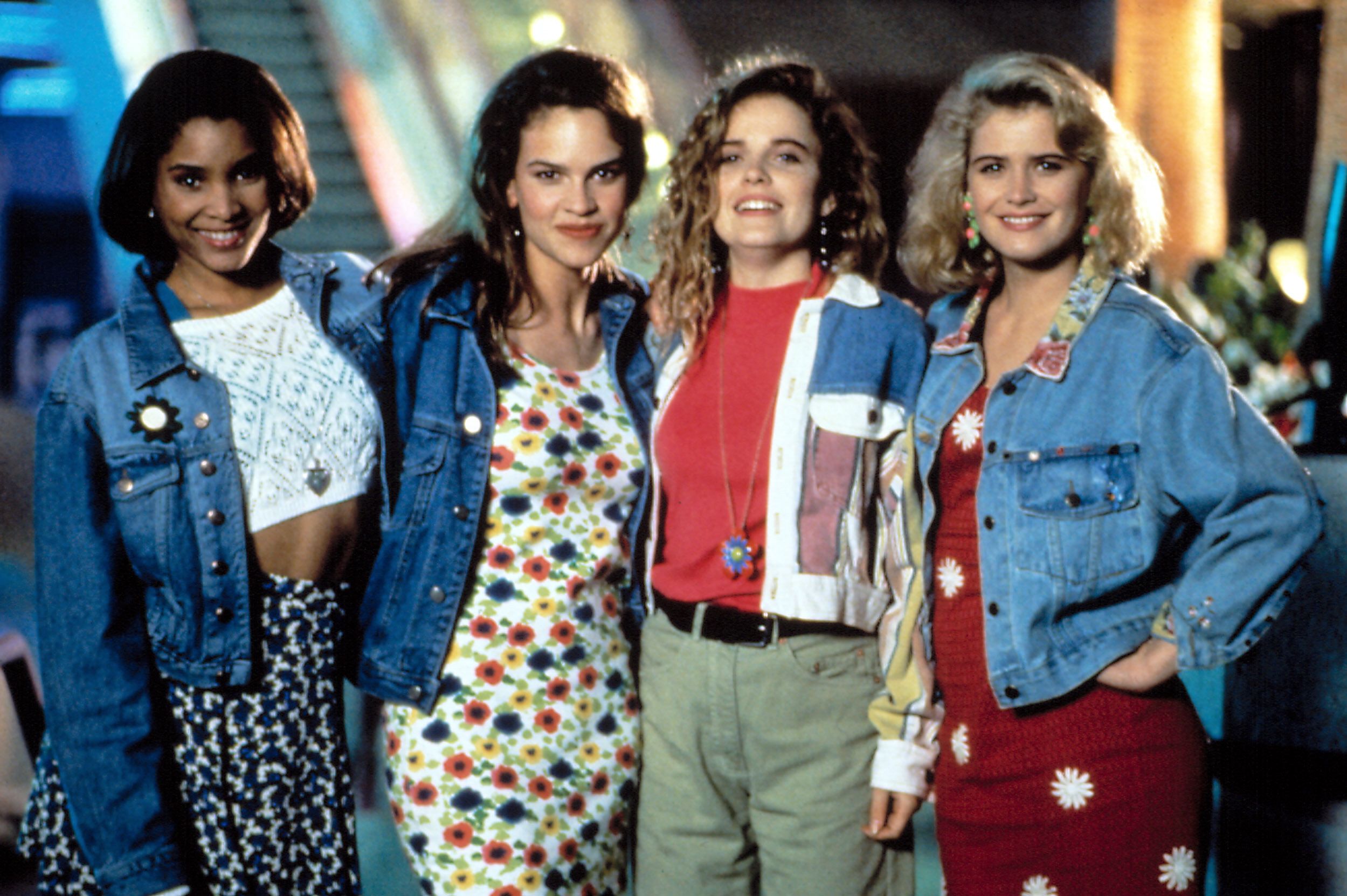 Something I appreciate as a more mature viewer is Buffy and Pike’s relationship—they’re equals. Buffy saves Pike’s life (e.g. his butt), then he helps her—there’s an “exchange of butts,” as Pike puts it. Their equality is further illustrated when they’re at the dance. Pike says, “I suppose you want to lead.” “No,” Buffy replies. “Me neither.” But Buffy is also very much a badass, for example when she flips a classmate for groping her. Interestingly the movie poster shows Buffy kneeling with a stake in her hand, and Pike hiding behind her, peeking over her shoulder. I also find it amusing that once she hits Merrick in self-defense she finds she has a taste for violence. And look, Hilary Swank and Ben Affleck!