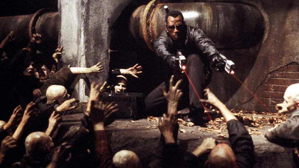Blade (Wesley Snipes), the half-vampire/half-human vampire hunter, takes a break from staking when he accepts a truce from the Vampire Nation. It seems there’s an anomaly causing the bloodsuckers to mutate into drooling Venus-flytrap-faced lunatics that are deadly to the un-mutated. Along with his human associates Scud (Norman Reedus) and Whistler (Kris Kristofferson), who magically returns from the dead, Blade reluctantly joins forces with a crack team of vampires.