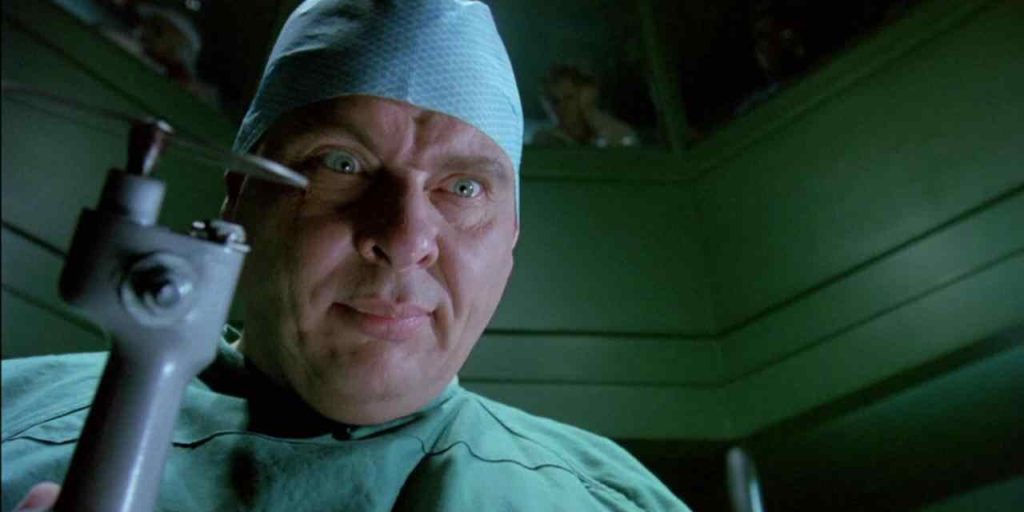 Dr. Giggles (the late, great Larry Drake) is an escaped mental patient who likes to pretend he’s a doctor. Hence the name, he also laughs at inappropriate times, not unlike Dr. Hibbert on The Simpsons. He returns to his hometown to take revenge for his father, who was killed by the locals because he murdered his patients in hopes of finding a heart for his dying wife. In the process, ol’ Giggles comes across teenager Jen (Holly Marie Combs), who, coincidentally, is in need of a heart transplant. He thinks he’s just the guy for the job.