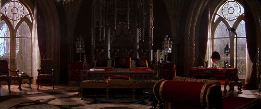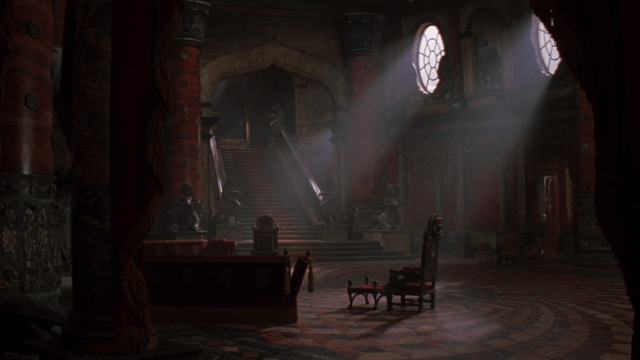 There are some things to like. The special effects are pretty good for 1999. It’s not terrifically gory; it’s thoughtful. Like Dr. Marrow, we are observing how the characters react in their crazy setting. It’s not very scary either; there’s one scene that’s kind of creepy when the wall fixtures in Eleanor’s room turn into eyes and glare at her while the kid-head carvings turn into scared, screaming faces. However, that bit with the carvings gets used a good two more times and by then has lost its creepiness factor. The house is a little eerie, since so many of the decorations and fixtures look like eyes.