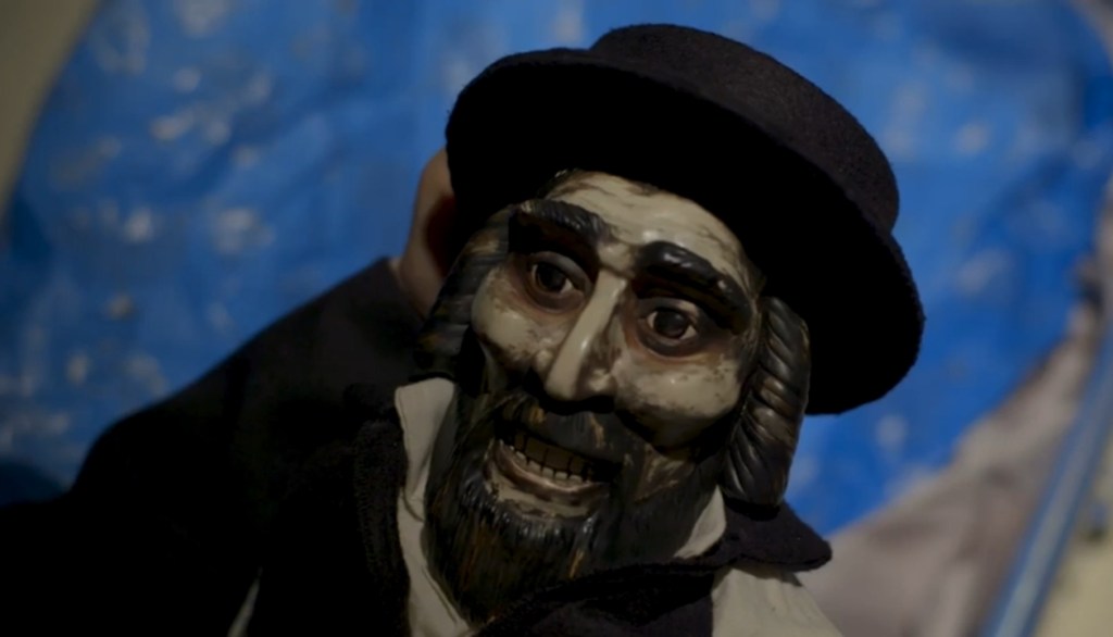 And as she considers various items, he proceeds to tell her the stories. Story one is “Dollface,” which follows a gaggle of teens on Valentine’s Day partying in a house that belongs to the children of two notorious killers. Segment two is “The Hand that Rocks the Dreidel,” a tale of Kevin (Forrest Campbell), a boy who on Hanukah is gifted with a golem (that looks more like a ventriloquist’s dummy) which is sworn to protect him. Number three is “Christmas Carnage,” in which a downtrodden pharmaceutical rep (Joel Murray) takes some of his own merchandise and does some bad things. The finale is “Room to Let,” Amelia’s own narrative about the origin of the ring she wears, which takes place on the winter solstice.