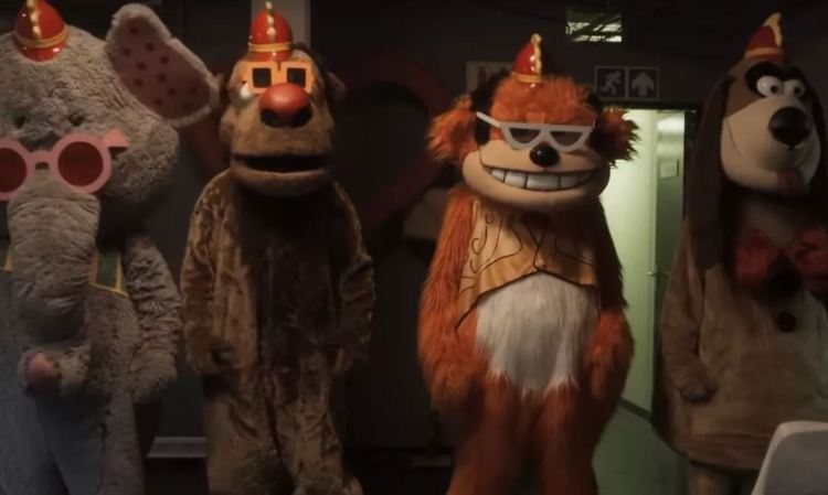 In real life, The Banana Splits Adventure Hour was a variety show from the late ’60s to early ’70s starring four dudes in animal costumes: Fleegle the dog, Bingo the monkey, Drooper the lion, and Snorkie the elephant. They performed comedy sketches interspersed with well-meaning but racist segments like the cartoon “The Arabian Knights” and the live-action serial “Danger Island.” In the reality of the movie, the show has continued going strong to the present day and the characters are animatronic.