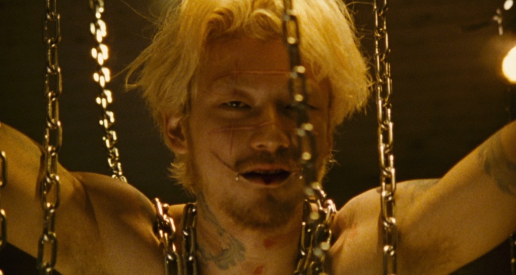 Oh noes! Boiling oil to the back! “Just a little torture,” says Kakihara. No big deal. There’s some comic relief from the nauseated reactions of hardened criminals to Kakihara’s methods.