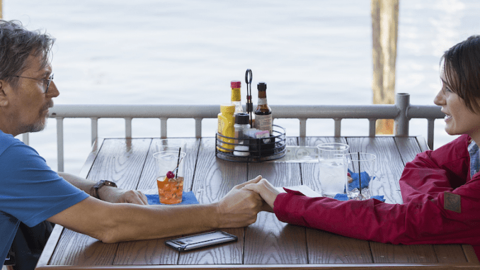 We open with a title card about a witch coming to steal kids at sea, and move on to Sarah (Emily Mortimer) being held by the police, who speculate “God only knows what happened out there.” Sarah is dehydrated and bruised, and her husband David (Gary Oldman) is conspicuously absent, though their daughters Lindsey (Stefanie Scott) and Mary (Chloe Perrin) are safe. She tells Detective Clarkson (Jennifer Esposito) her story: David, tired of giving fishing tours, wanted his own boat and his own business, so he bought a vessel with a history of not one, not two, but three unexplained cases of entire crews going completely missing. Once at sea, everyone on board: Sarah, David, Lindsey, Mary, Lindsey’s boyfriend Tommy (Owen Teague), and first mate Mike (Manuel Garcia-Rulfo) are all under the evil influence…of the cheap murder boat.