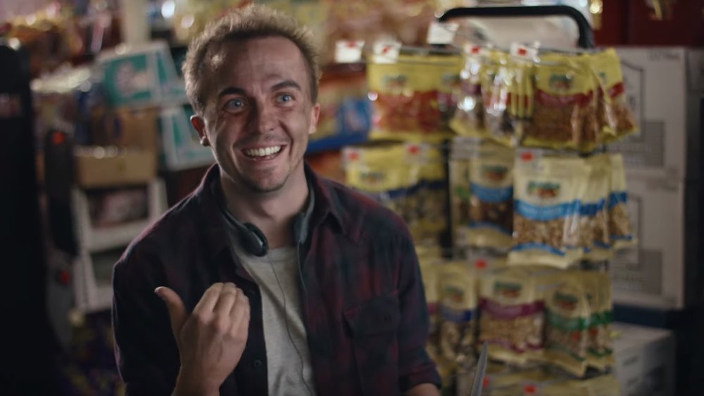 I liked the movie, but I was seriously puzzled as to how to relate to it until I was looking for images for this post and saw that one reviewer had classified it as a dark comedy. Then it clicked into place for me. I had noticed bits of humor, but to reframe the whole thing as a horror comedy blew my mind. I’m assuming that you, like me, know Muniz almost entirely from Malcolm in the Middle, so he’s safely in our minds as a kid. This casting is brilliant because Jonathan is still hugely immature and unsuccessful from an American perspective: he works a dead-end job (at a liquor store, which he refers to as a “lifestyle convenience boutique”), his parents are paying half his rent, and he’s desperately single. Like a typical movie character with an arc building, he tends to run from his problems. At one point in the film he ends up living at home with his parents: his gruff and bossy father and his indulgent and smother-y mother. This culminates in him jumping out his bedroom window and running away. It further culminates in him having only the clothes on his back (he doesn’t even have shoes), no vehicle, and no money. Somehow he still has his Walkman, which he listens to perpetually while riding around on a stolen bike. Okay, it’s a tragi-comedy.