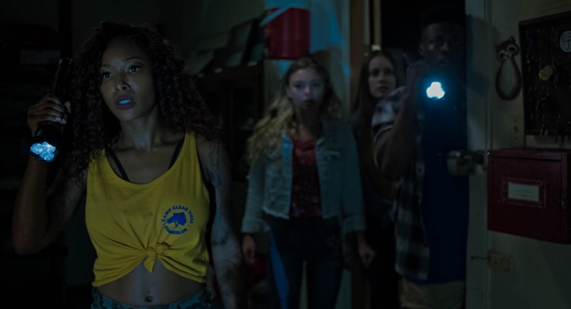 The film is populated by strong female characters. Chuck is the film’s voice of reason. (As she says to Sam after he calls her, “Your phone seems to be working fine. Wouldn’t you rather call the cops?”) There’s also champion hole-digger/weapon-maker Jamie (named after Jamie Lee Curtis), played by Jenna Harvey, and badass Imani (Brittany S. Hall), pictured below in the yellow.