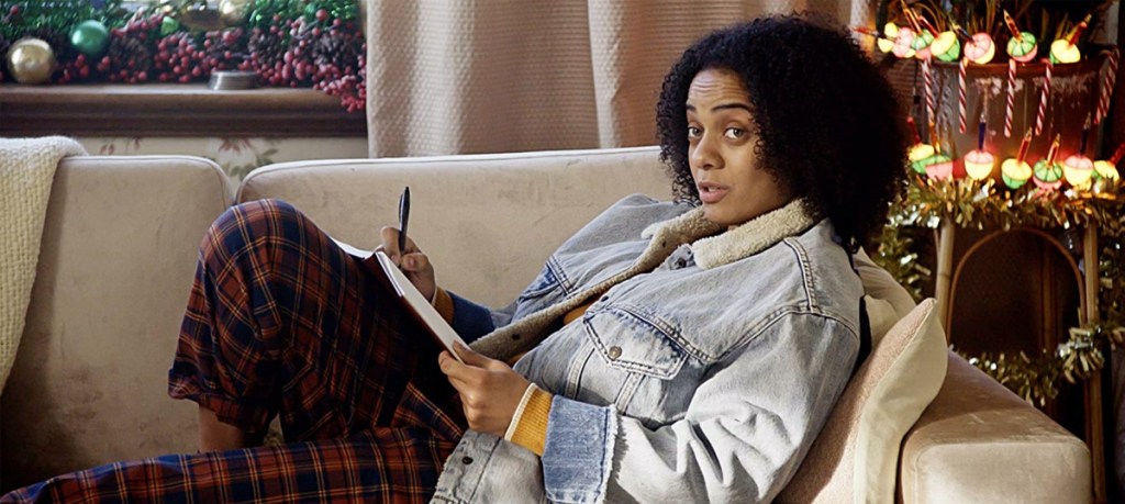 Men are absolutely vilified. There are only two guys in the movie who aren’t total scumbags: Marty’s boyfriend Nate (Simon Mead) and Riley’s potential love interest Landon (Caleb Eberhardt). Even Nate has his issues. He’ s initially supportive of Marty and her friends, until he gets drunk and explodes that not all men are bad. The scene ends with Marty forcibly kicking him out, Nate all the while complaining about double standards. Landon is a gangly nerd prone to ugly sweaters. He’s clearly infatuated with Riley, but he’s shy and indirect and nonthreatening. You know, a good guy.