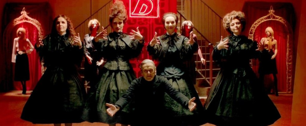 I can’t remember what caused me to put this on my watchlist, but it was not at all what I expected. The cover is so dark and dramatic (see below), I was incredulous that the film is classified as a horror comedy. But it is utterly, comically bizarre. Human interactions are stunted and awkward or just downright weird among most of the characters. For example Sheila’s bosses Stash (Julian Barratt) and Clive (Steve Oram), who continually call her into meetings for infractions like not having a meaningful handshake or waving at the boss’s mistress. Then, my favorite, Miss Luckmoore (Fatma Mohamed) from Dentley and Soper’s. Her conversations with customers go like this: “Your changing room is waiting for you and your dress to coalesce into a simple union of wonder” and “Your shopping will conclude now. Pay us for your items and return to your house.” But the scenes without dialogue are even stranger, like Miss Luckmoore washing a menstruating mannequin while coworker Mr. Lundy (Richard Bremmer) watches and tosses off.