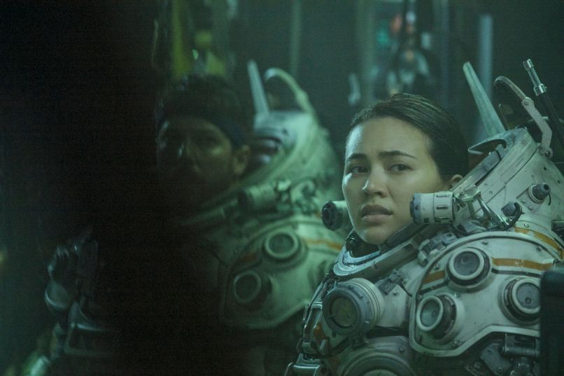 The movie opens with Norah brushing her teeth and waxing philosophical about how she’s an empty-glass kind of gal, then jumps right into action and stays fast-paced and intense. It’s generally a paint-by-numbers subgenre: creature picks off crew members one by one. However, in this film, most of the problems come from the characters’ damn malfunctioning pressure suits–the creatures don’t really come into play as major antagonists until 74 minutes into the runtime. Still, it’s refreshing to have characters dying off from situations beyond their control rather than sheer stupidity. And the deaths aren’t super predictable; against all odds, characters survive acts like saying “We’ll be right back,” and poking a baby monster with a pen in the name of science.