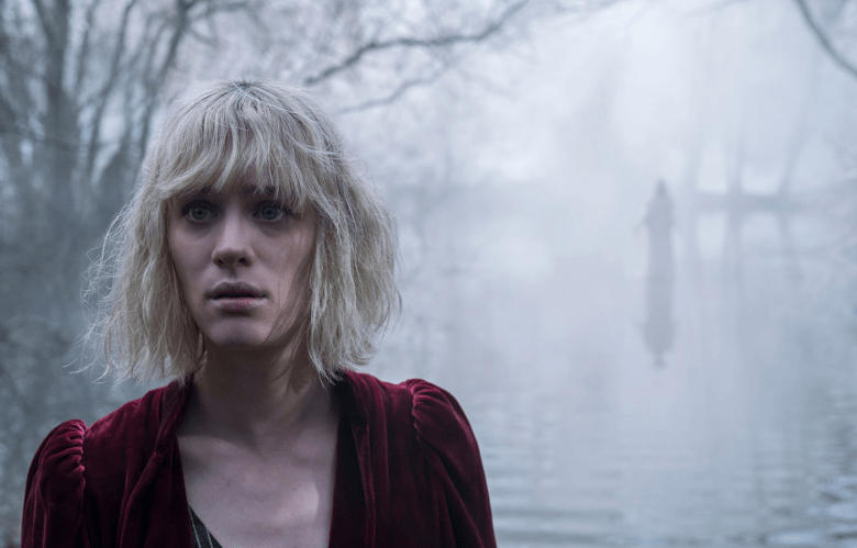 Loosely based on the Henry James novel The Turn of the Screw. It’s 1994, and Kate (Mackenzie Davis) is a perky schoolteacher who is hired on to be a nanny for young orphan Flora (Brooklynn Prince), who lives in a giant, giant house with only her maid, Mrs. Grose (Barbara Marten). The previous au pair, Miss Jessel (Denna Thomsen) abruptly disappeared, which is not in the least disconcerting or suspicious. Flora’s sullen brother Miles (Finn Wolfhard) joins them after being kicked out of boarding school for severely beating his classmate. The typical haunted house events occur: disembodied voices and footsteps, doors locking themselves, mannequins appearing out of nowhere. Before long, Kate is questioning her sanity.