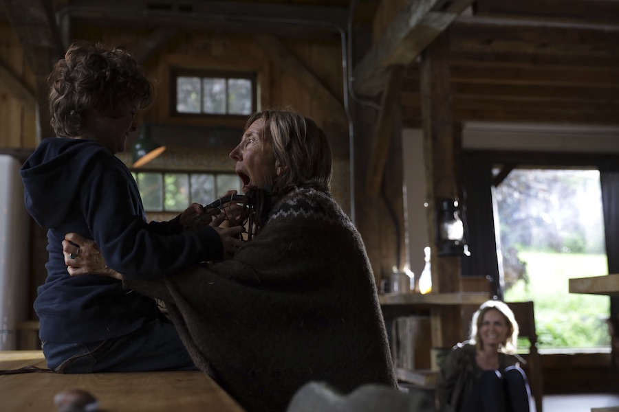 2020 movie, not to be confused with the 2003 Stephen King adaptation, which I have reviewed here. Also, dreamkatchers are not to be confused with dreamcatchers–here’s the difference, according to a title card: a dreamkatcher is “a misshapen wooden hoop asymmetrically looped with blackened string, decorated with feathers and beads, believed to hold evil. Its origins are ancient and unknown…” Child psychologist Gail (Radha Mitchell) conveniently is dating Luke (Henry Thomas), a guy whose young son Josh (Finlay Wojtak-Hissong) is traumatized by the recent death of his mother Becky (Jules Willcox), which is exacerbated by the three of them moving into her house. Turns out she was axe-murdered by a little boy after he came across one of those evil dreamkatchers because…reasons? The boy’s grandmother Ruth (Lin Shaye) has hidden the katcher safely in her barn, until Josh comes and steals it, which leads to him being possessed as well. Can Gail psychology him out of it?