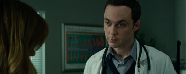 My main gripe is how fast and loose anything medical is portrayed. Evie is bombarded with antidepressants, even when they’re inappropriate for her situation. She’s prescribed them after her car accident because she’s sad she killed a baby. As anyone with depression will tell you, there’s a big difference between being grief-stricken for obvious reasons and being clinically depressed. In the present the pills are foisted on her again because David thinks she’s having hallucinations. As IMDB points out, she’d be better off with an anti-psychotic for that. Dr. Mathison (Jim Parsons), the man Evie sees regarding the health of her fetus, is a whimsical combination of gynecologist, sonographer (to be fair it’s not unheard of for an ob\gyn to do sonograms, but it is something that requires additional schooling), and psychiatrist. Evie and David even turn to him when she falls through a plate glass window instead of going to the emergency room.