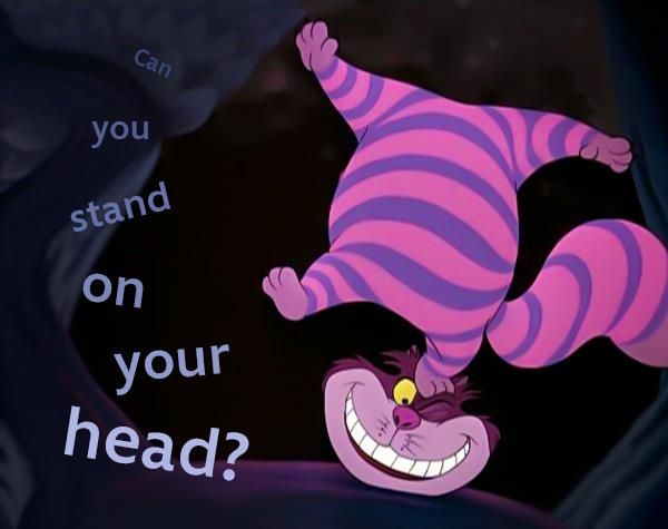 9.) The Cheshire Cat (Sterling Holloway), literally standing on his head: “Can you stand on your head?” (Alice in Wonderland, 1951)