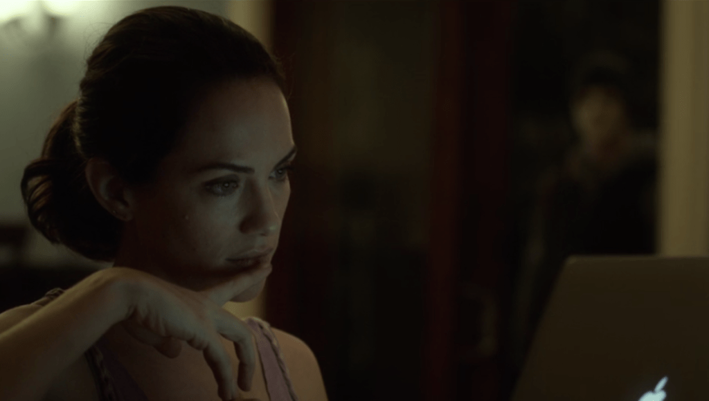 3.) Maddie (Kate Siegel) is trying to finish writing her book but is frustrated by writer’s block: [Types] “Ending stuff. THE END. Money now please.” (Hush, 2016)