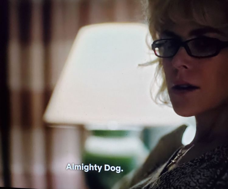 20. Nancy (Nicole Kidman) is pondering the handbook from the gay conversion program she’s forced her son into, noticing it’s riddled with typos: “We always come back to Dog’s true design. [Ruefully, to herself] Almighty Dog.” (Boy Erased, 2018)