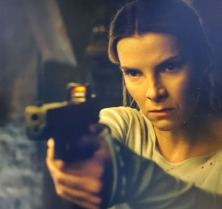 Crystal is a veteran of Afghanistan who’s (erroneously) scooped up with a handful of other “deplorables” to be hunted for sport by liberals with an agenda. She proves herself to be quick-witted, brave, and compassionate, as well as delightfully unperturbed by her circumstances. Instead of getting involved in a weapons grab with the other captives, she calmly makes a compass and sets off to figure out where she is. Crystal is wont to say things like “They’re trying to kill me, I don’t give a shit why” and “At least one of you is smart.” She can shoot as well as engage in hand-to-hand combat, a skill that contributes to one of the coolest fight scenes committed to film.