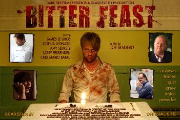 Peter (James LeGros) is the host of his own cooking show, and also the chef at a chic gourmet restaurant. He focuses on organic, sustainable ways of eating, for example cooking a deer he killed and butchered himself. Unfortunately his technique doesn’t garner enough ratings, and Peter loses the show and his upcoming line ofContinue reading “‘Bitter Feast’ is Sharp and Darkly Funny”